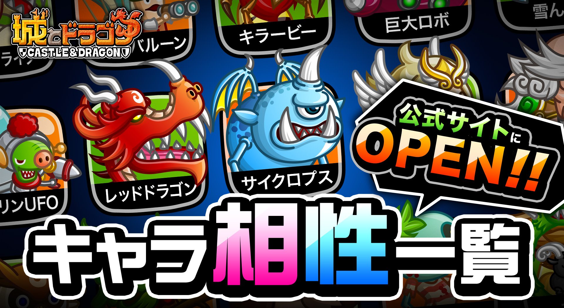 公式 城とドラゴン 城ドラ Al Twitter キャラ相性一覧公開 ムッハー 多数ご要望をいただいていた キャラ 同士の相性一覧 が公式サイトで公開されただす 基本ステータスや オイラたちの得意なキャラ 苦手なキャラも網羅されてるだすよ ぜひ参考にしてくれ